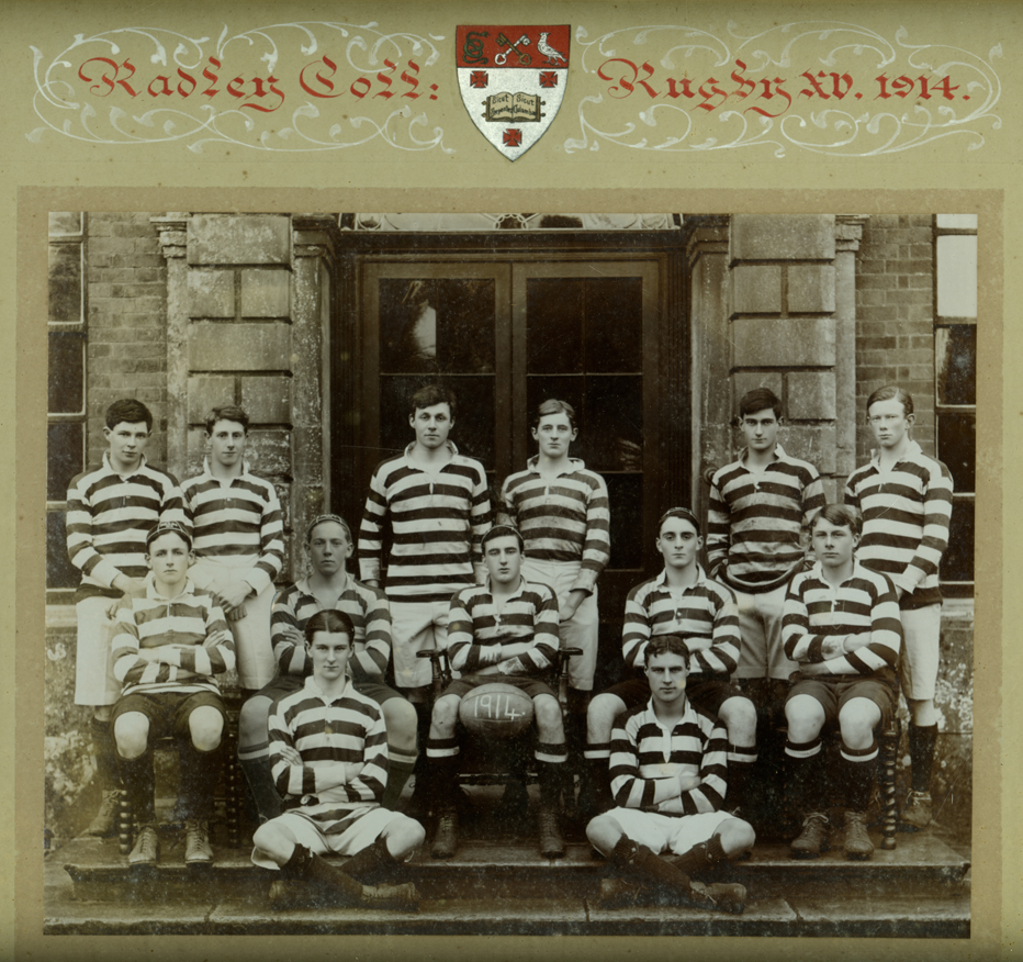 The first match against another school was scheduled for November 1914 against Sherborne. Unfortunately the fixture was cancelled because of illness at Sherborne, so that initial first encounter was postponed until 27th November 1915 at Sherborne. The 1915 season started with two matches against ‘an Oxford Military XV’ – a scratch side drawn from serving officers stationed in Oxford. This was followed by a match against ‘Brasenose, Oxford’ – with a complaint that ‘Brasenose’ seemed to have drawn their players from all over the University. Radley were outclassed (and out-weighed) in all three matches, which raised alarm bells: