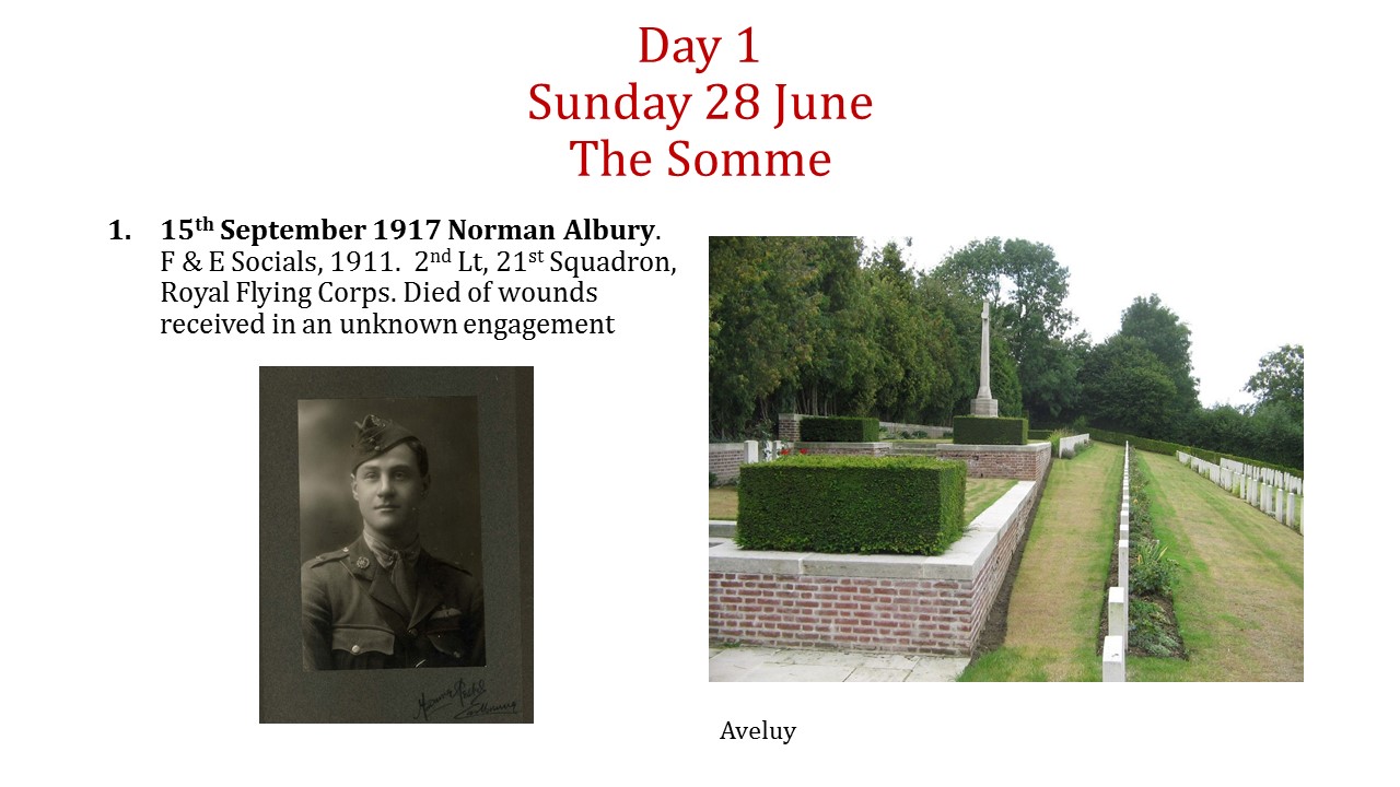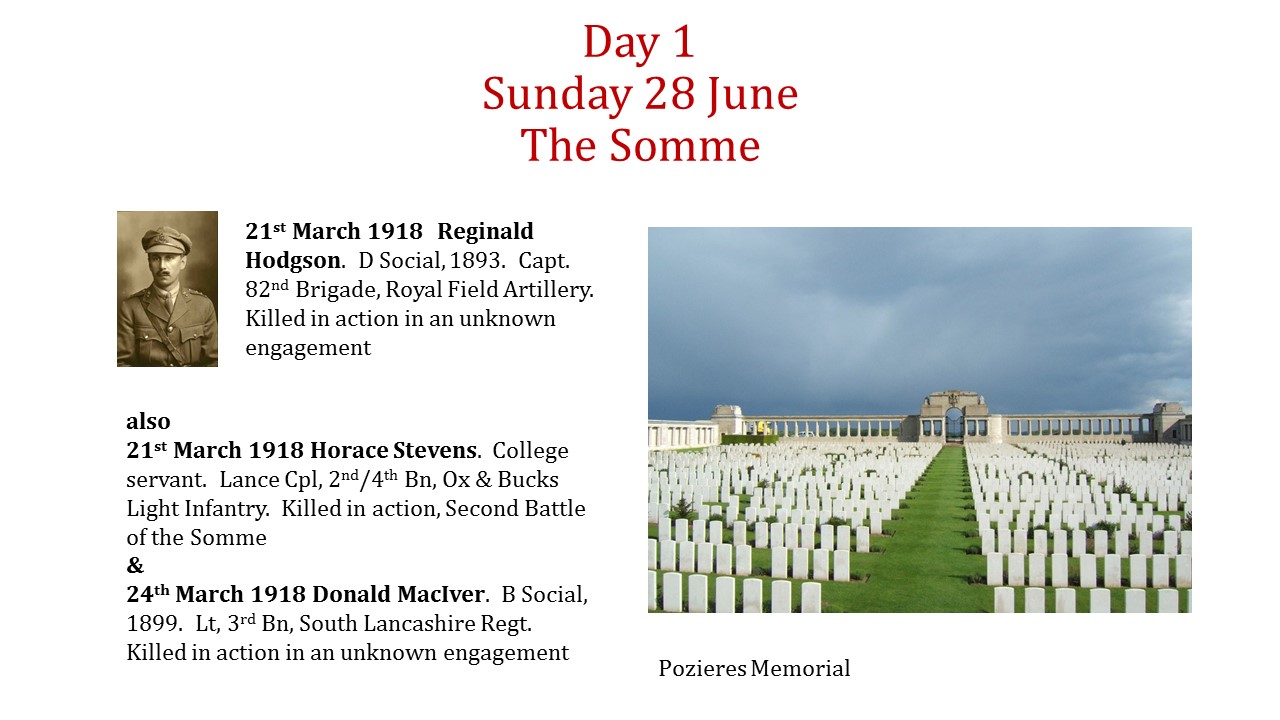 6 days, 252 km, 119 Fallen Old Radleians, 52 Commonwealth War Graves sites, 2 walkers. A sponsored walk in aid of Combat Stress undertaken in memory of those Radleians who fell on the Western Front in the Great War. The walkers aim to visit as many of the War Graves in France and Flanders as possible over six days, covering 40km each day. They can be sponsored via their JustGivingMemoryMarch page. |