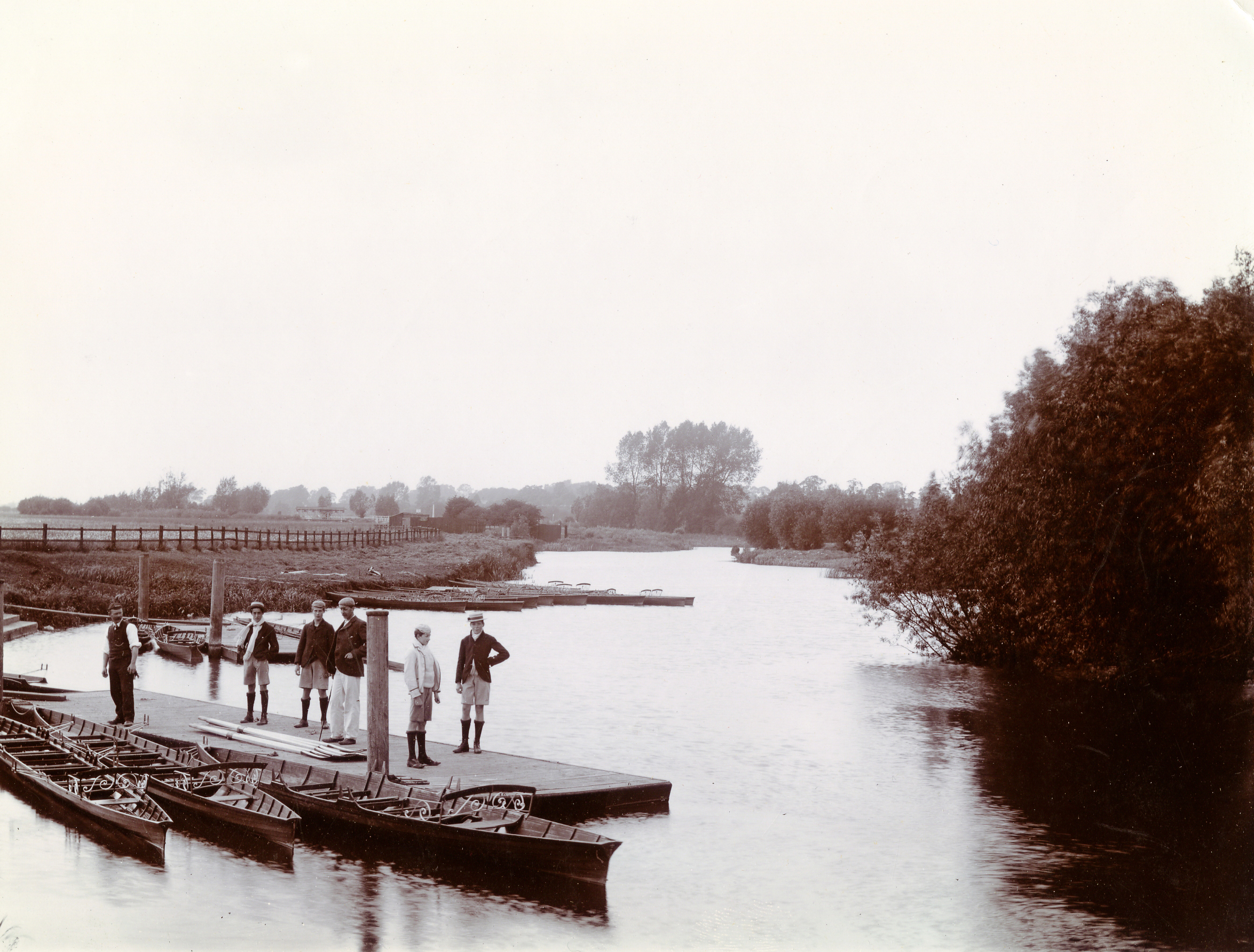 Taunt was born in Oxford in 1842 to ‘poor but respectable’ parents. Aged 14 he joined the staff of Edward Bracher, a pioneer photographer with a shop on the High Street, and soon found himself entrusted with the outdoor (as opposed to studio) work. He was retained as photographic manager when Wheeler & Day bought out the business in 1863. This cutting edge technology – photography was barely two decades old – clearly suited his temperament.Every inch the Victorian self-made man and entrepreneur, Taunt established his own business in 1868. Despite (or perhaps because of) financial difficulties, he continued to work until his death in 1922. In addition to the usual studio portraits, commissioned photography, local views and postcards, he published over fifty books and tourist guides, and a daily leaflet summarising the results of the Bumps. Perhaps his best known book was A New Map of the Thames (first published 1872), on the strength of which he was elected a Fellow of the Royal Geographical Society. He invented a mobile darkroom mounted on a punt so he could develop glass plates in the field. His firm even branched out into general printing, window glass (a natural development from picture framing) and bicycle repairs (presumably inspired by the tourists who bought his guidebooks), while as a children’s entertainer he was in demand for lantern slide shows.