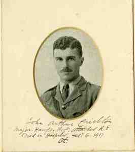18th December Godfrey Tuite-Dalton, E Social 1905. Major, Royal Field Artillery. Died in a London Hospital after a long illness, the result of wounds received in France. He was a Junior Scholar, the Hall Mathematical Scholar and won the Mathematics Prize. His father campaigned for his name to included on the War Memorial. He died after it was dedicated and so was listed, along with Harold Willcocks, out of sequence at the end. Aged 32