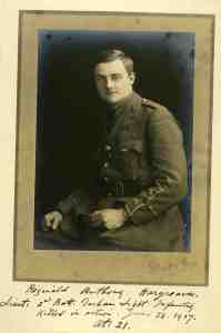 4th June John Tonson-Rye. F Social 1893. Captain, Motor Transport, Army Service Corps. Originally from Ireland. At school he was a Prefect. After school, he returned to Ireland where he worked as a land agent, becoming a member of the Professional Institute of Land Surveyors. There is no photograph in the War Memorial albums and no obituary beyond a note published on 26th July 1919 that he was among the dead. The Radley Register published in 1962 incorrectly recorded his on 4th June 1918; the 1923 Register says 4th June 1919; the Commonwealth War Graves Commission records 25th May 1919. He married Clari de la Roche in 1907. They had a son called John, born in 1910, but he was not entered for Radley despite a long family connection.