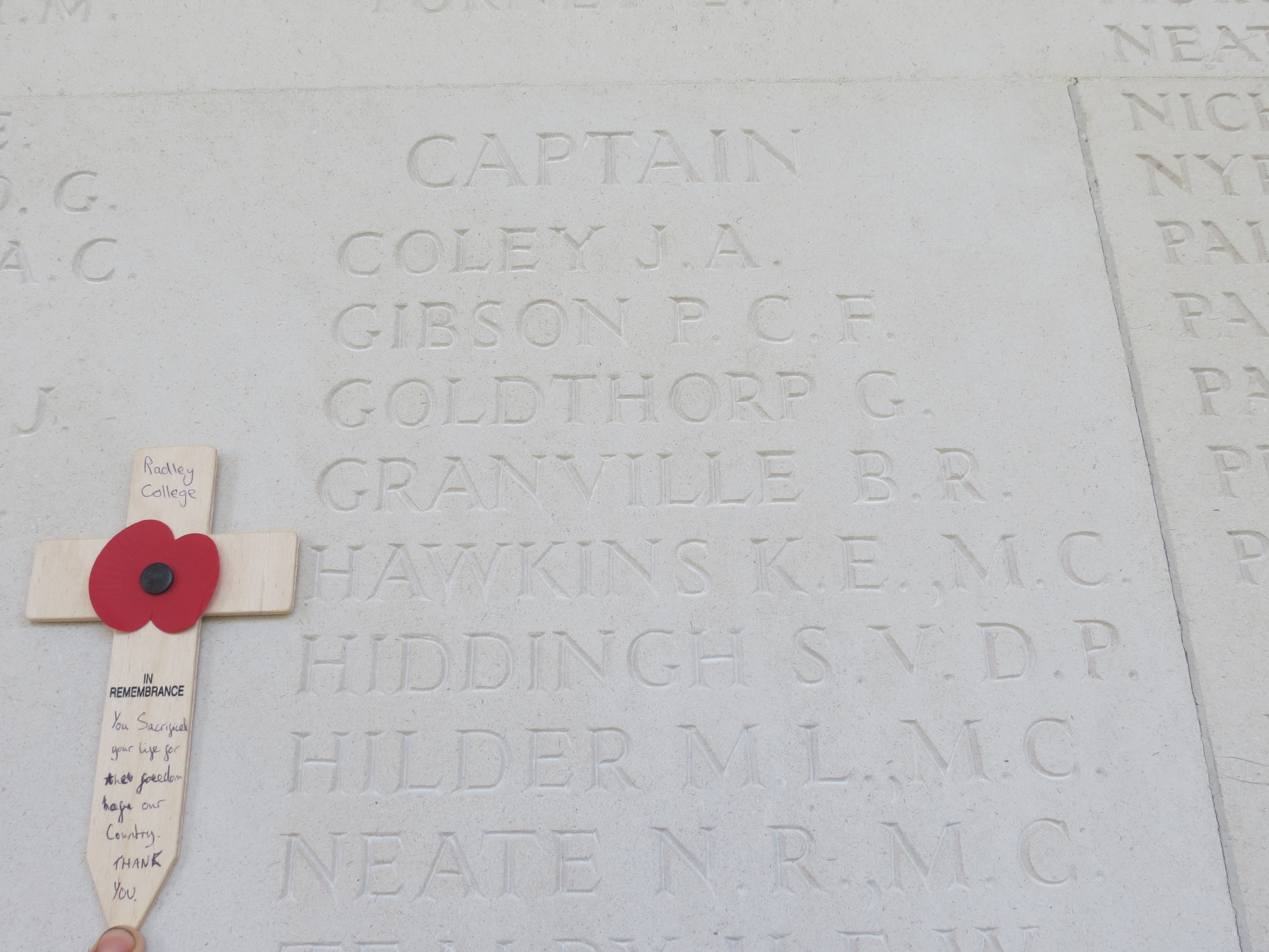 Stephen Hiddingh's name on the Arras Memorial.  Photographed for Marching in Memory, July 2015