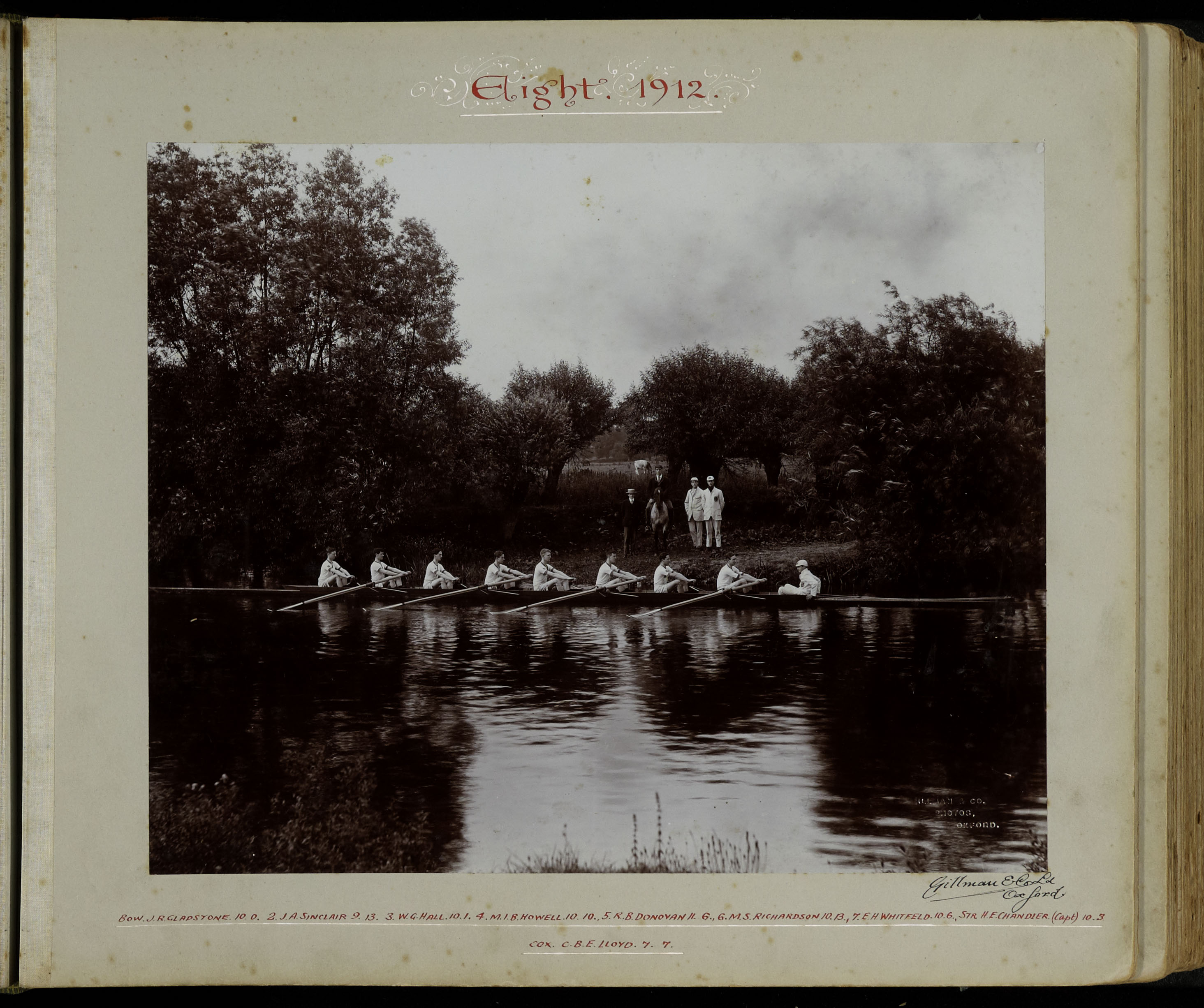 At school he rowed for the First VIII in 1912. After school he worked ‘with Messrs Lysaght Ltd.’ – a steel-working company in Bristol.