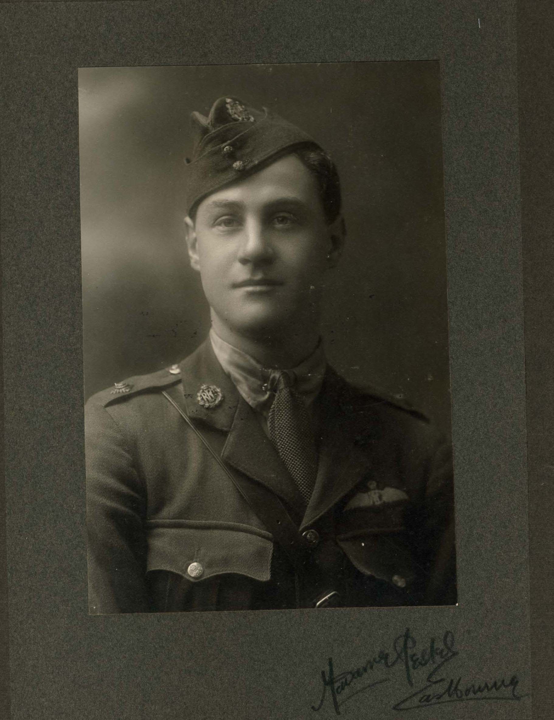‘Went to Canada; 1st W Ontario Regt, and 98th Sqn RFC; Captain; married. Died on active service in France 27th May 1918’.