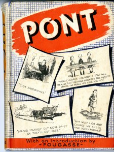 Pont aka Laidler, (Gavin) Graham (1908–1940) was an English cartoonist, noted for his work in Punch magazine in the 1930s. Under the name ‘Pont’ (derived from a nickname – Pontifex Maximus – he acquired during a visit to Rome), Laidler became one of the most original talents in the history of Punch. He is perhaps most famous for his series on the ‘British Character’. This was published as a book in 1938. Another book The British Carry On (1940) portrayed the atmosphere of the phoney war. A famous example shows a placid scene in a country pub, where the radio is tuned to the German propaganda station: ‘Meanwhile in Britain, the entire population, faced by the threat of an invasion, has been flung into a state of complete panic.’ ‘At Home’, and ‘Popular Misconceptions’ were also successful series, but by the end of his brief career he was also developing a striking new approach, moving away from the detailed, large drawings to economical, one or two figure sketches with pithy captions.