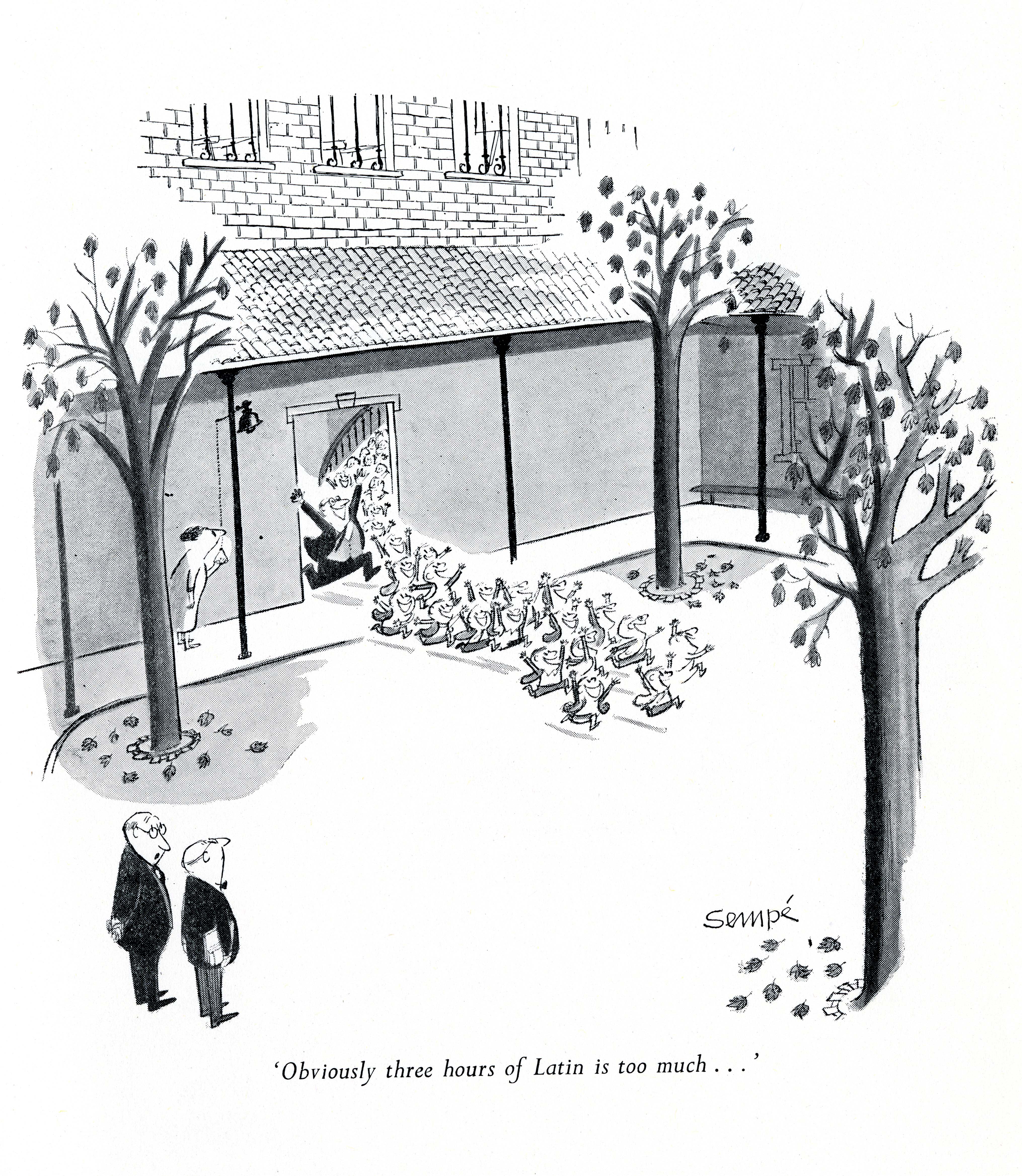 Lancaster, Osbert (1908 – 1986) was an English cartoonist, author, art critic and stage designer, best known to the public at large for his cartoons published in the Daily Express where he pioneered the ‘pocket cartoon’, a topical single-panel single-column drawing appearing on the front page. Over 40 years he drew some 10,000 cartoons for the Express.