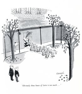 Searle, Ronald William Fordham (1920 – 2011) was a British artist and satirical cartoonist. He is perhaps best remembered as the creator of St Trinian’s School and for his collaboration with Geoffrey Willans on the Molesworth series.