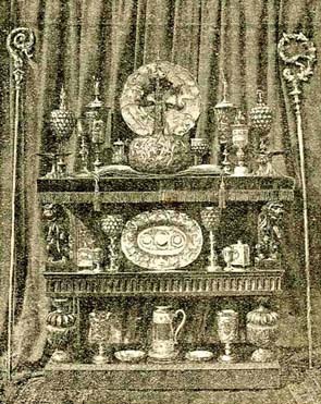 The Inventory of effects was revisited in 1862 and was now annotated with the locations and condition of the individual items: ‘4 old brass altar candlesticks – worn out’, ‘a bronze candlestick – broken’, ‘carpet in still room – worn out’. Most telling of all is the list of plate with many items now marked as ‘sold.’